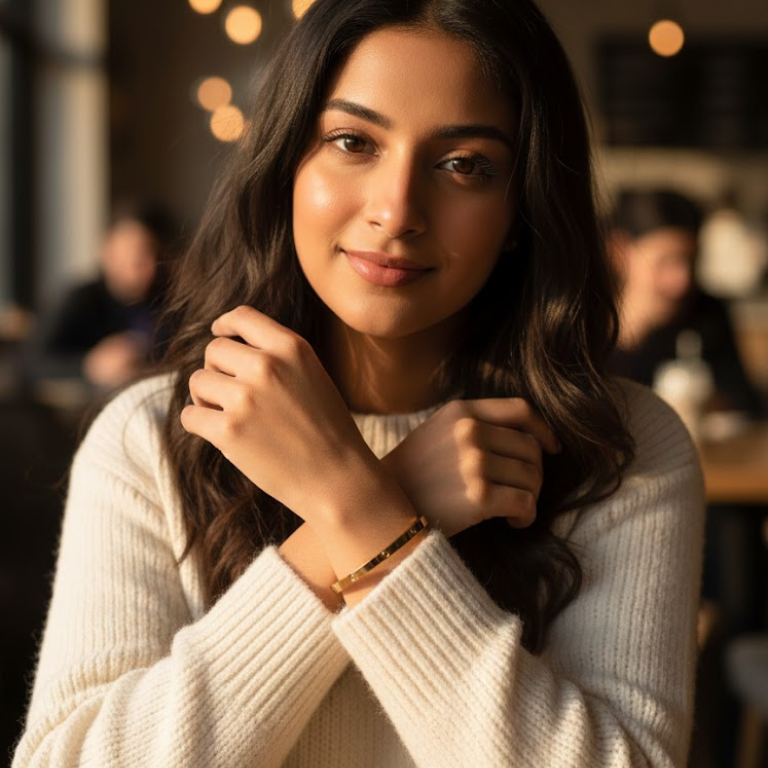 Perfectly balanced between bold and graceful, this bracelet transitions effortlessly from day to evening wear. Whether styled alone for understated elegance or paired with other fine pieces, it enhances every look with effortless charm.