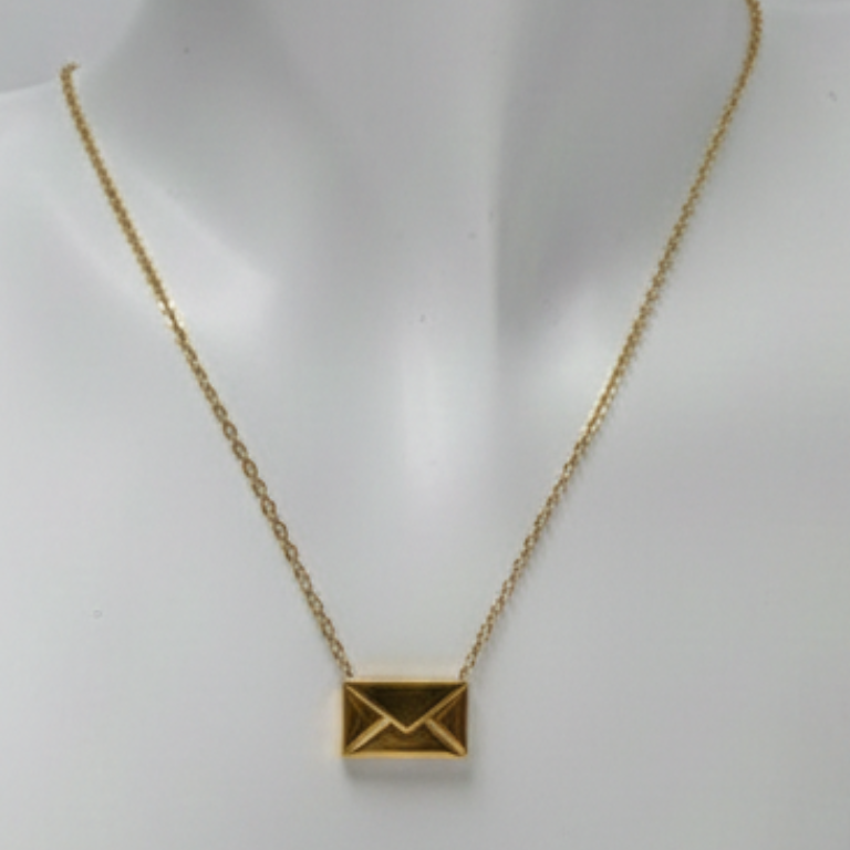 The envelope-shaped pendant symbolizes meaningful messages and timeless style, making it a perfect accessory for those who appreciate simplicity with character. The durable stainless steel construction ensures long-lasting shine, resistance to rust, and color retention over time.