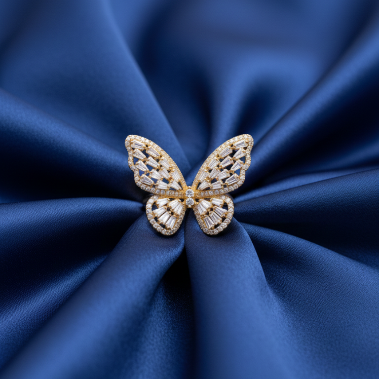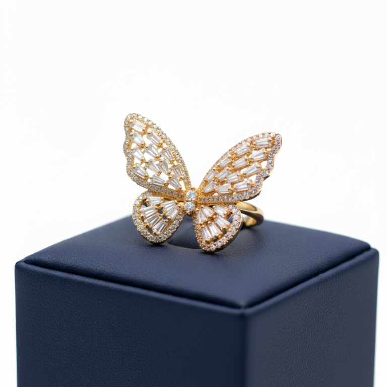 • Motif: The ring features a large, majestic butterfly in mid-flight, symbolizing grace and transformation.