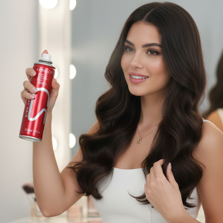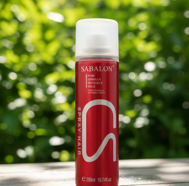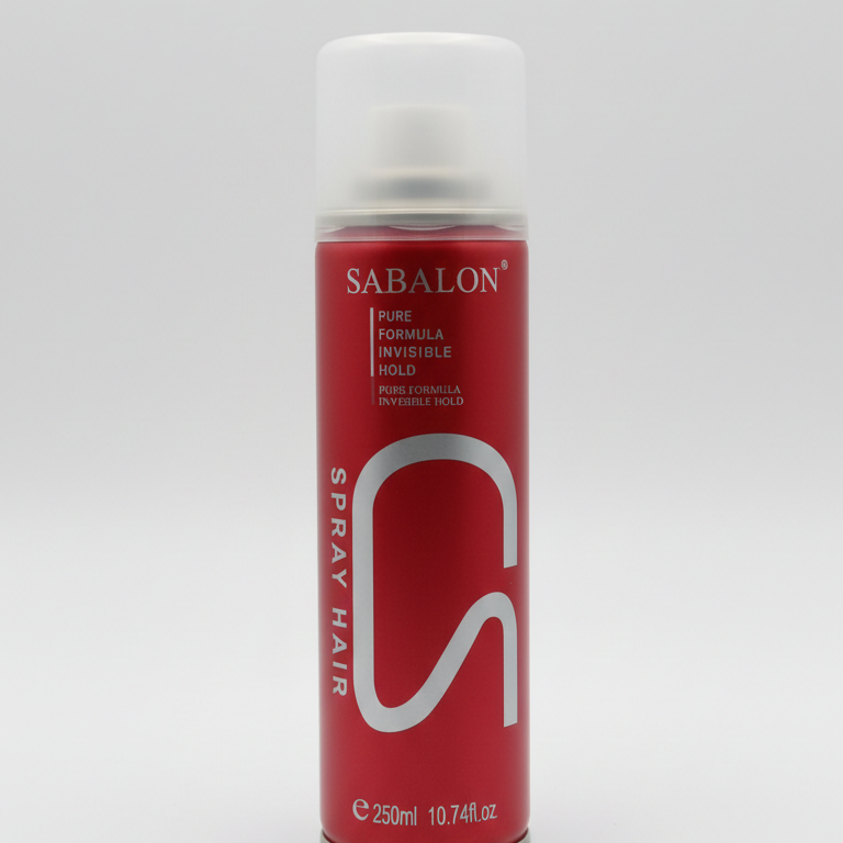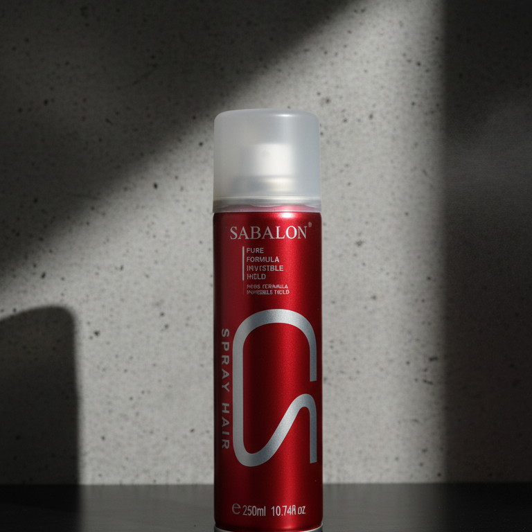 Form Factor: A slim, elongated aerosol can designed for easy handheld grip during professional styling.