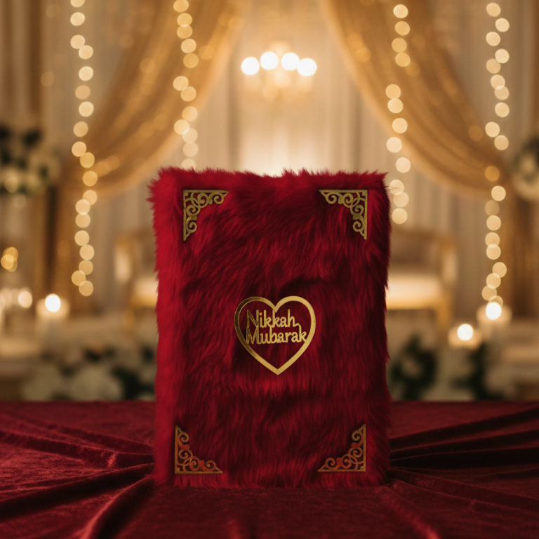Our Far Nikah signature booklet is meticulously designed for couples who value elegance, tradition, and the sanctity of their wedding vows. This isn’t just a contract; it’s a piece of art that will preserve the memory of your special day for generations to come.
